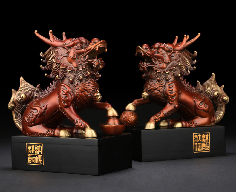 純銅彩《祥瑞麒麟》擺件 銅工藝品家居飾品一對(duì)擺設(shè)0402